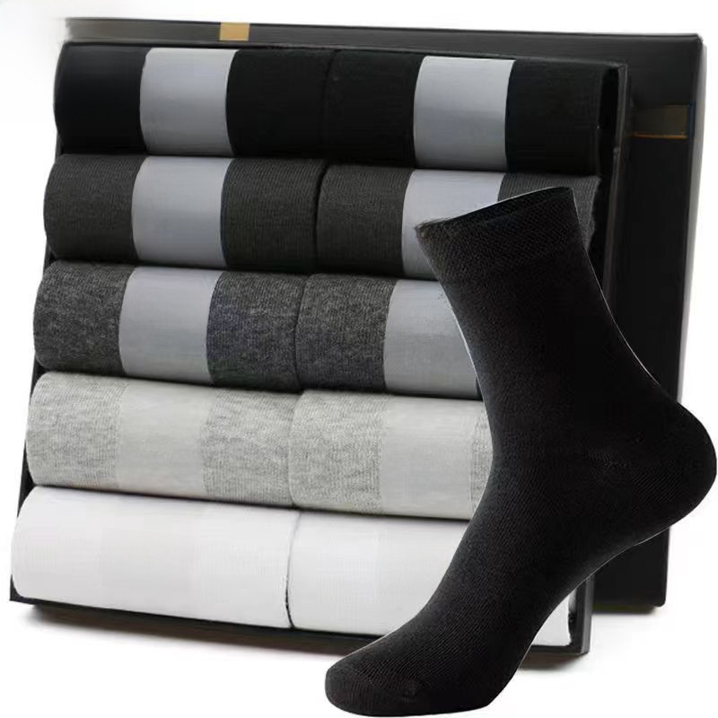 Spring and Autumn men’s classic business socks foot bath shop black white gray solid color mid-calf socks comfortable breathable sweat-absorbent factory direct sales