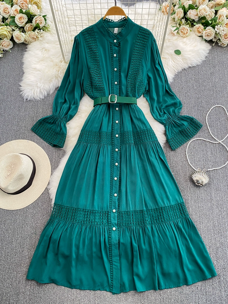 French style autumn dress hollow flared sleeve dress