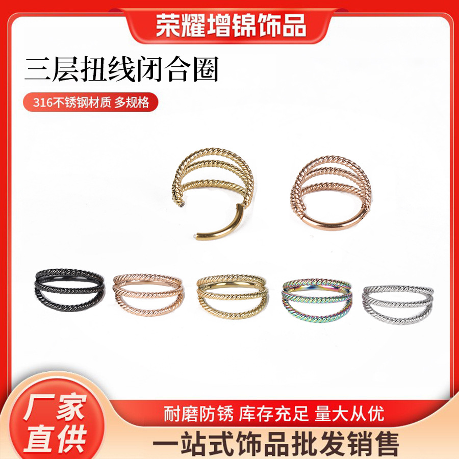 Cross-border Europe and the United States hot-selling 316 stainless steel three-layer personality nose ring earrings body piercing jewelry trend nose