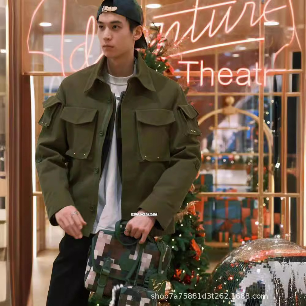 High version 24 early spring tide brand new joint series casual shirt coat rivet letter tooling style multi-pocket