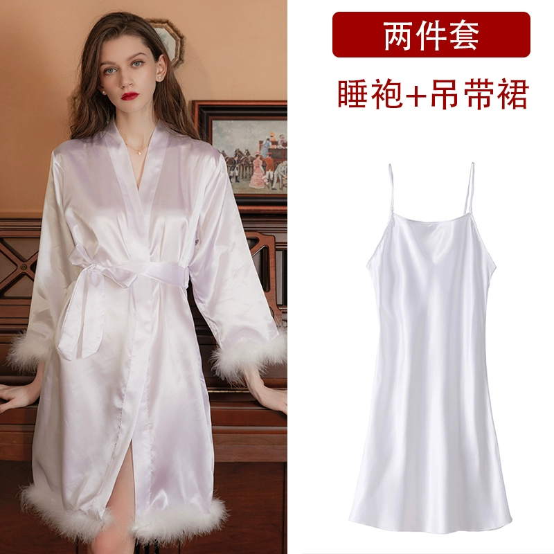 Double 11bride bride robe morning robe female feathers, bed robes, wedding makeup bridesmaids, wedding, sexy bathrobe