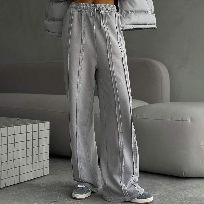 AliExpress high-grade stitching wide-leg trousers hiphop fashion brand high street loose straight elastic waist sweatpants for women