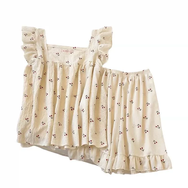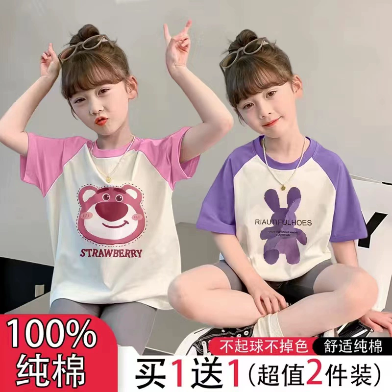 2-piece rag-shoulder Korean cartoon printed short-sleeved T-shirt