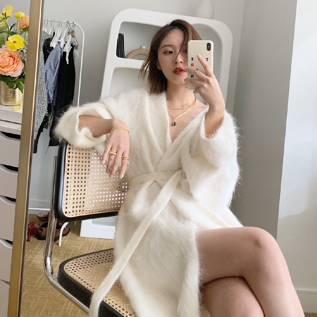 Nordic niche long knitted cardigan women’s 2024 early spring furry belt cardigan trench coat