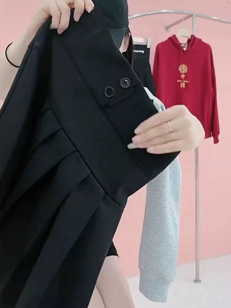 Anti -walking light black pleated skirt female skirt 2024 autumn and winter new abdomen is thin, small A -line skirt