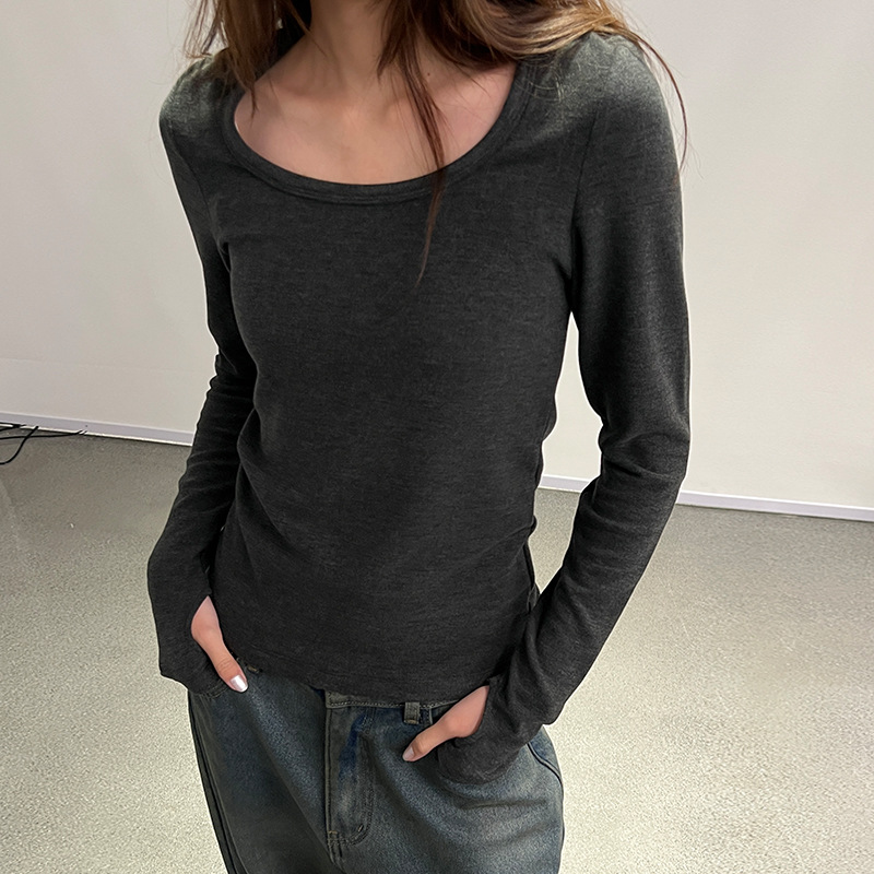 JVV SISTER three lines 2023 Winter new long sleeve large round neck slim straight bottoming T-shirt 52161
