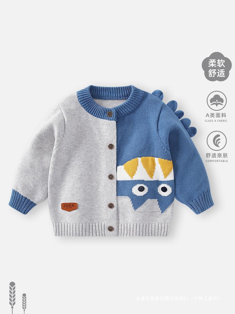 Baby boys’ sweater autumn and winter knitted cardigan 2023 new autumn coat baby sweater boys’ outing clothes