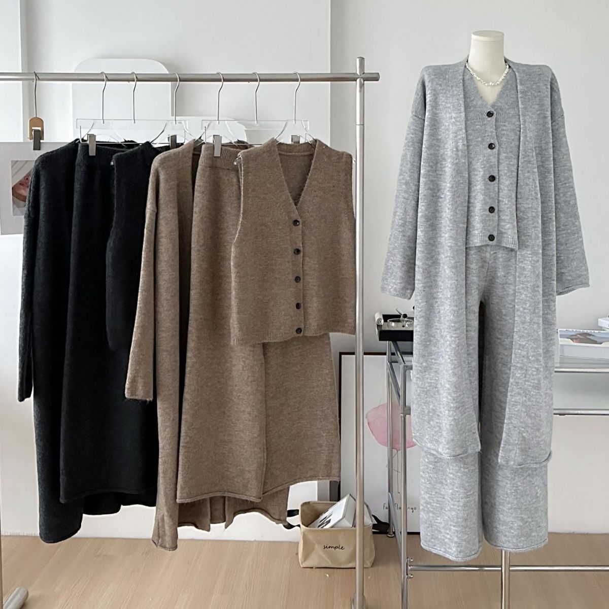 Autumn and winter new this year’s popular women’s casual long sleeve knitted cardigan vest high waist pants three-piece suit coat