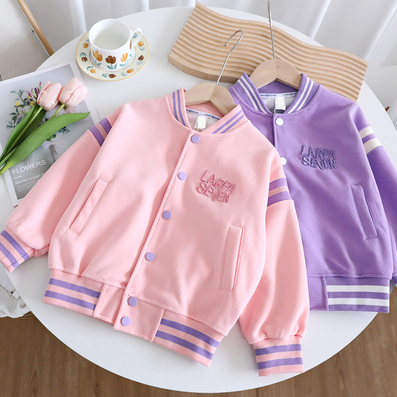 Western Style Spring Girl’s Cardigan Jacket 2024 New Style Middle and Large Children’s Fashion Alphabet Baseball Suit Casual Top