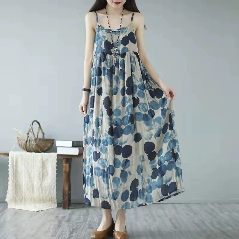 Polytic loose casual sleeveless beach suspender dress