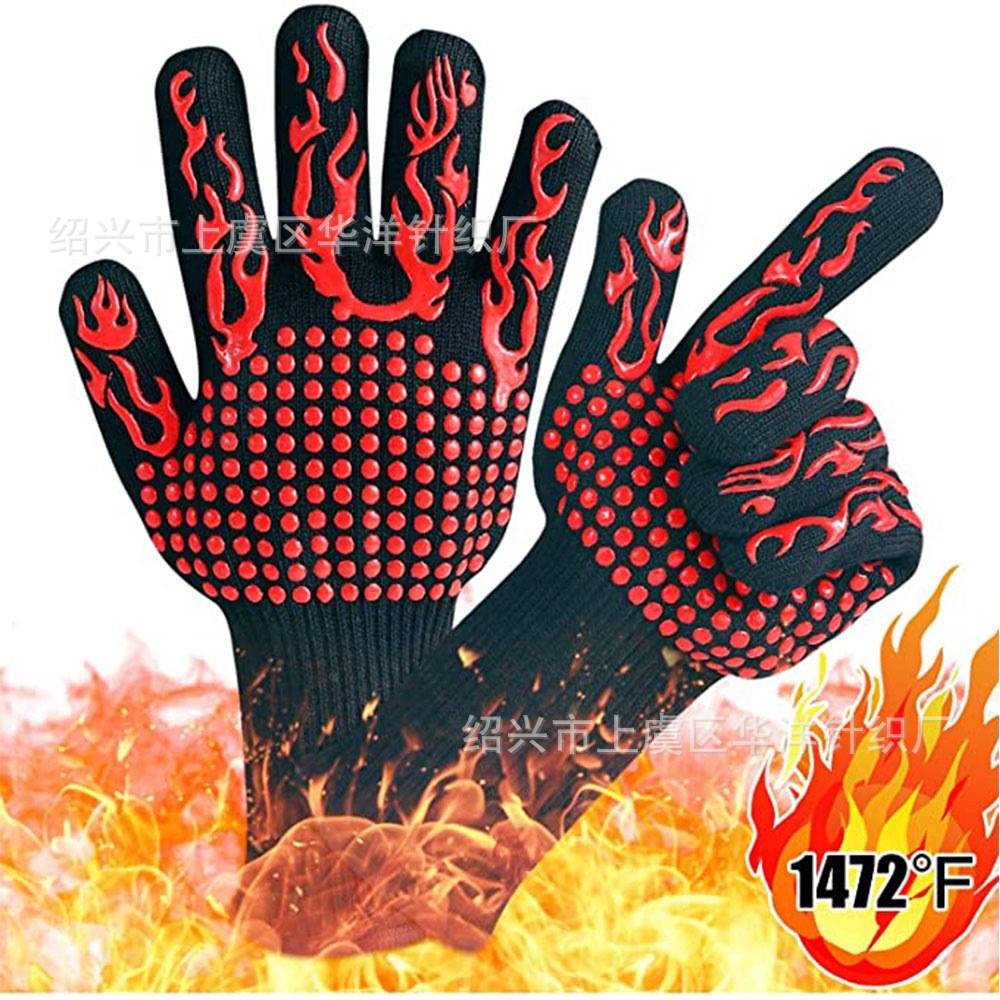 Amazon Cross-border High Temperature Flame Retardant Fireproof Gloves BBQ Oven Cooking Double-layer Thickened Silicone Gloves