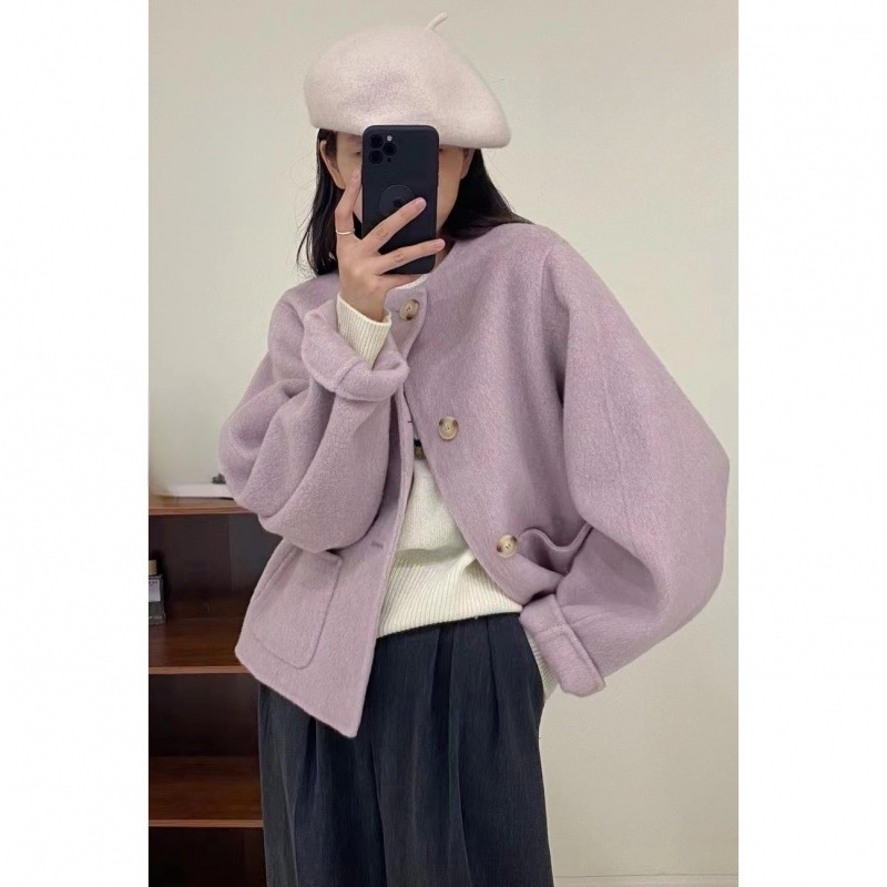Ws Autumn and Winter New Korean-style Purple Woolen Coat Women’s Short Small Chanel-style Loose Round Neck Small Woolen Coat