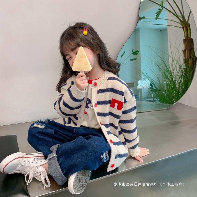Girls’ knitted cardigan 2023 Autumn Autumn new arrival medium and small children baby Western style Spring and Autumn Sweater top coat