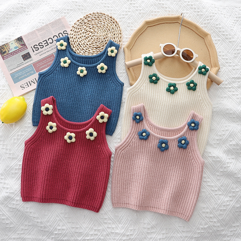 2024 Children’s Wear Spring and Autumn Girls’ Western Style Flower Knitted Vest New Baby Girl Cute Children’s Sweater Vest