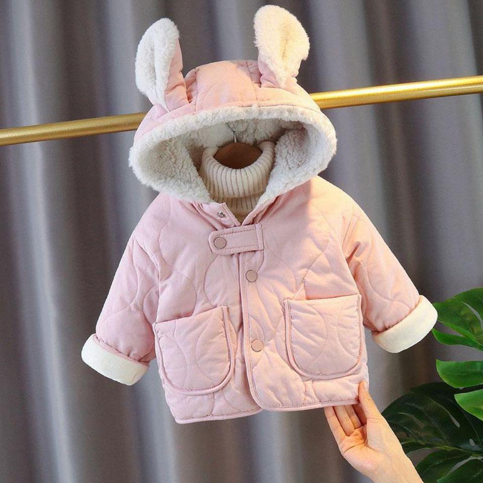 2023 winter new Korean baby coat female baby fleece-lined thick warm cotton-padded jacket children’s cotton-padded jacket trend