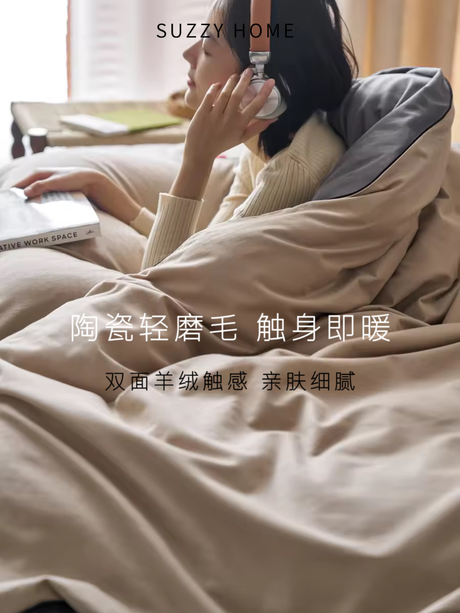 R9DC Maillard autumn and winter class A 100s long-staple cotton thickened brushed quilt cover single piece 200×230 quilt