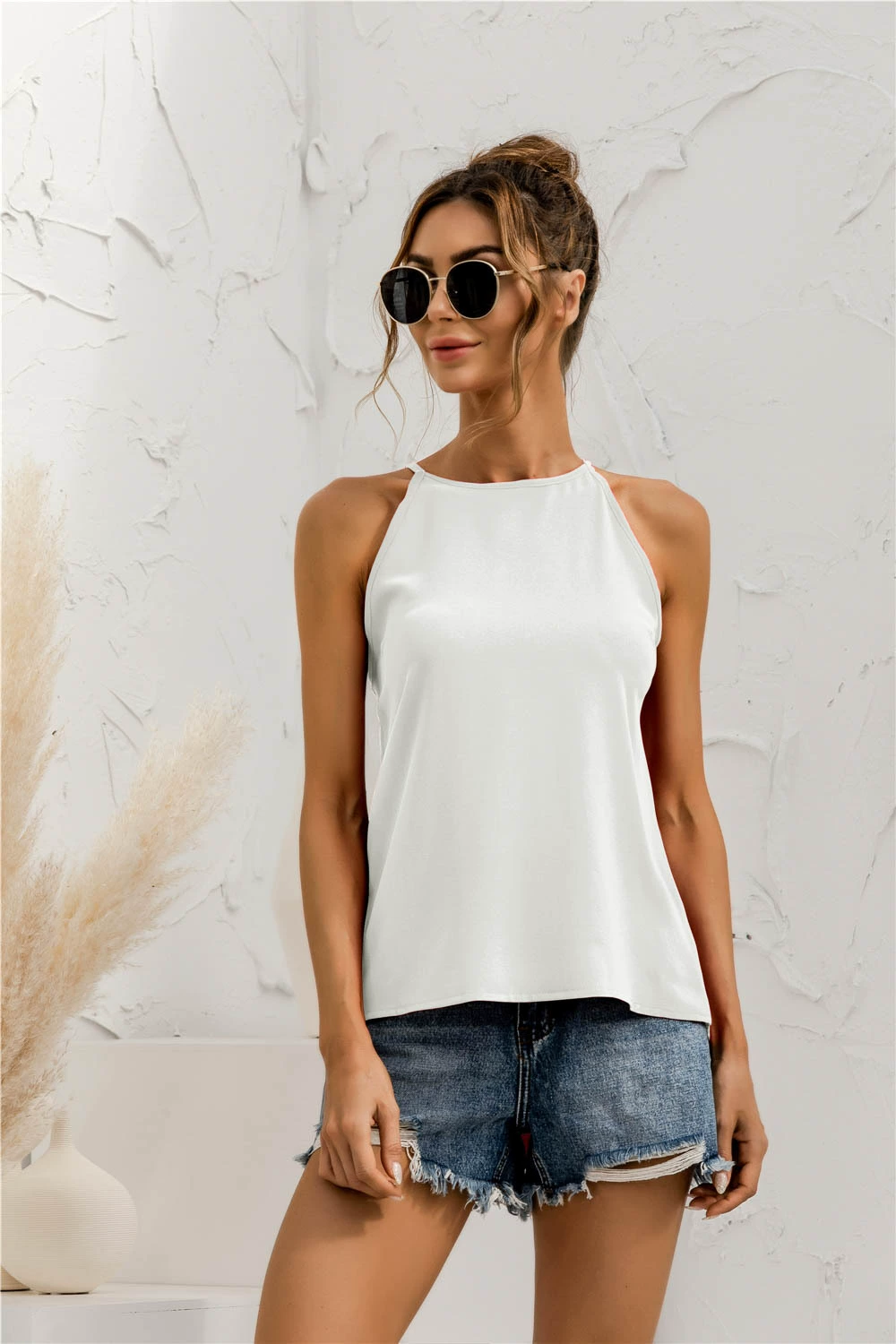 Sleeveless hanging neck pure color small vest sexy pure color vest