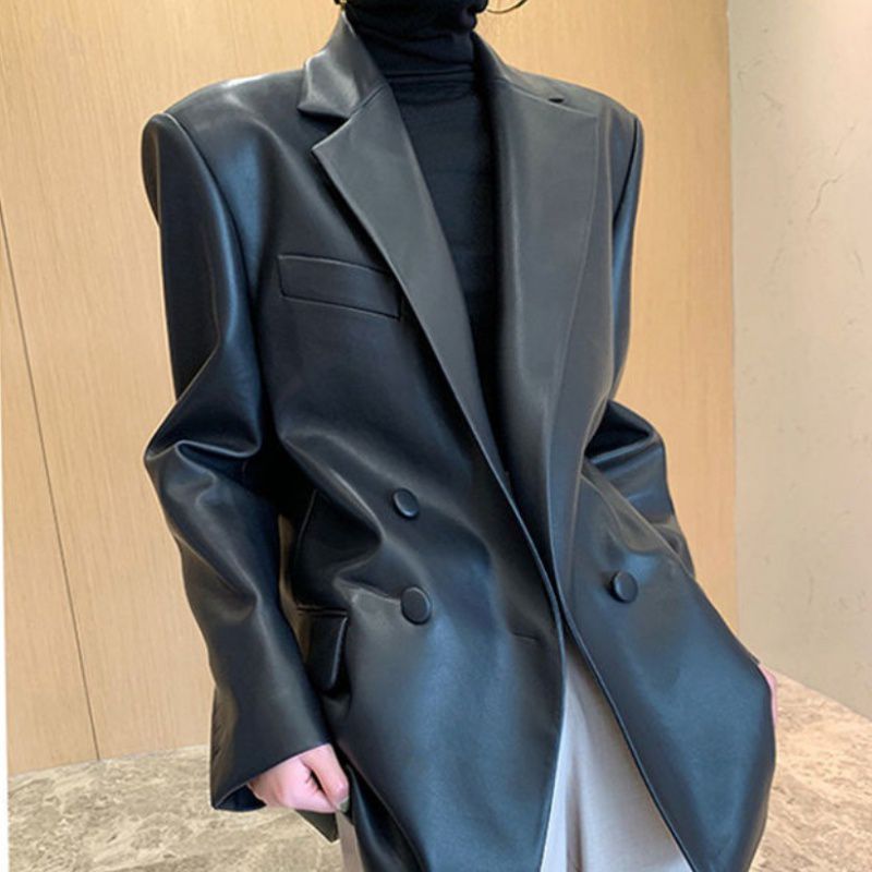 Retro Hong Kong Style Leather Suit Jacket Women’s 2024 Spring and Autumn New Korean Style Loose High-end Shape Leather Suit