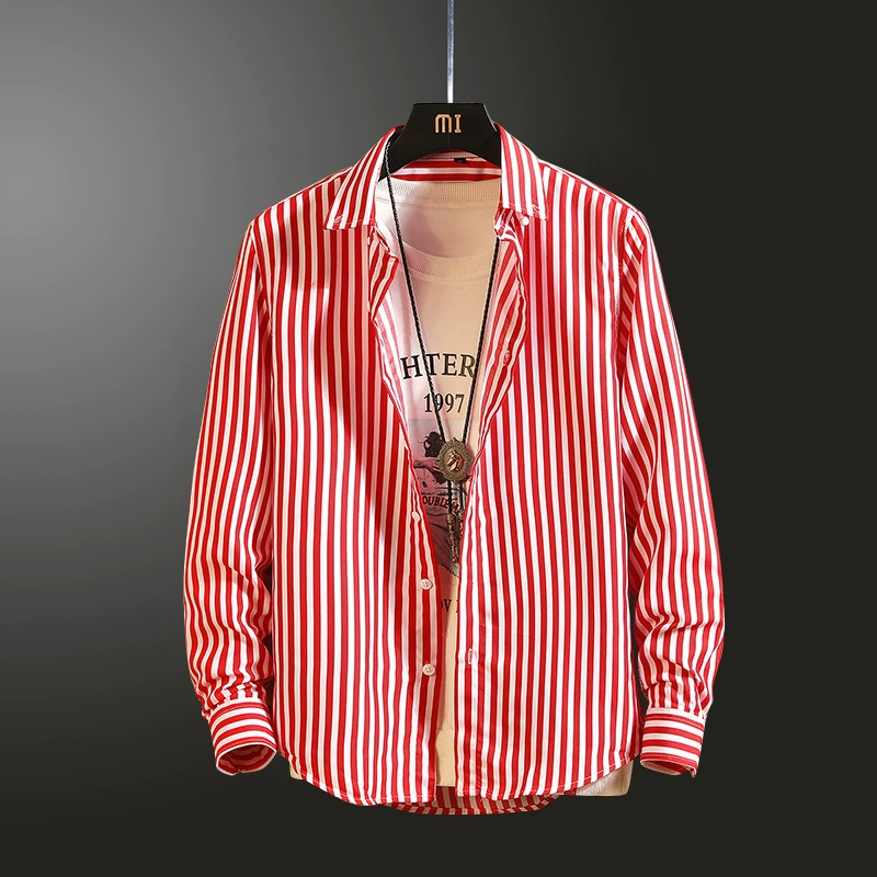 Fashion vertical striped long -sleeved leisure inner Japanese shirt
