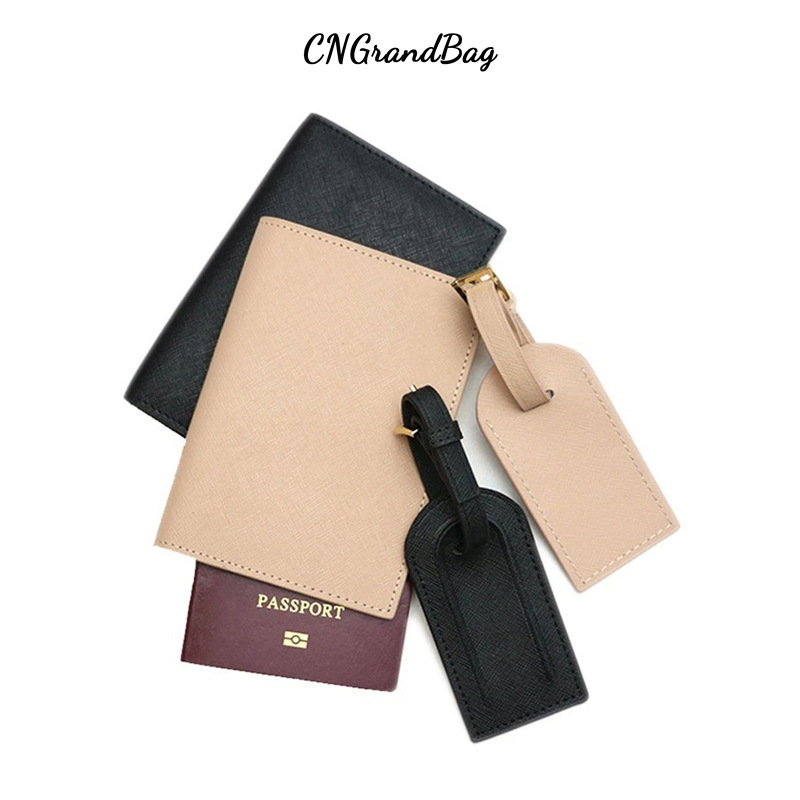 Portable Simple Saffiano Leather High Quality Solid Color Travel Ticket Certificate Passport Bag Luggage Tag Protective Cover