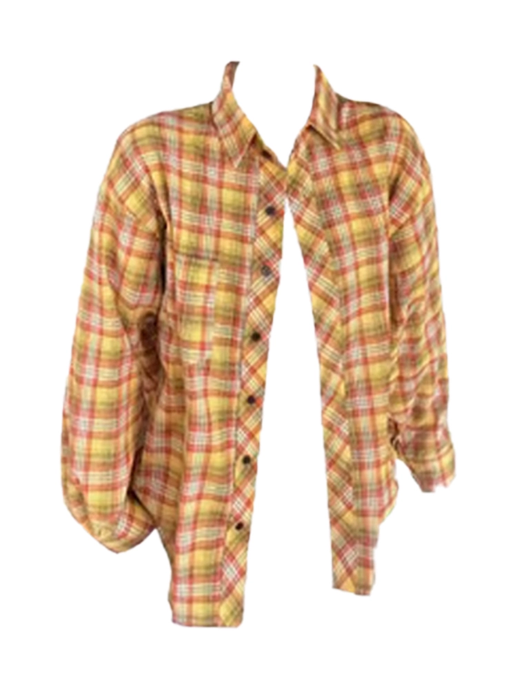 Retro loose ginger plaid mid-length long-sleeved shirt, versatile sun protection shirt for men and women