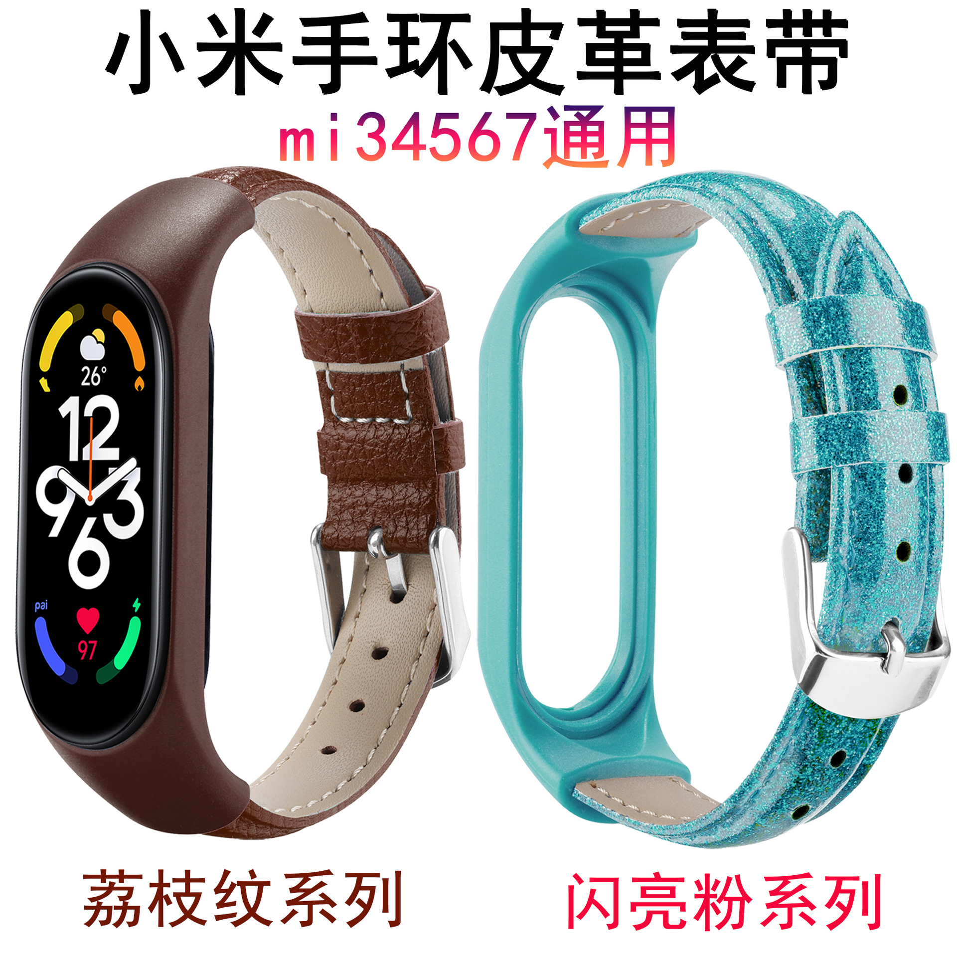 For millet bracelet strap mi3456 universal TPU bezel + PU leather strap millet bracelet 7 strap