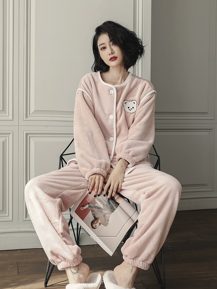 2024 New Pajamas for Women Autumn and Winter Coral Velvet Plus Velvet Thickening Warm Cartoon Internet Celebrities Can Be Weared Outside Home Clothes