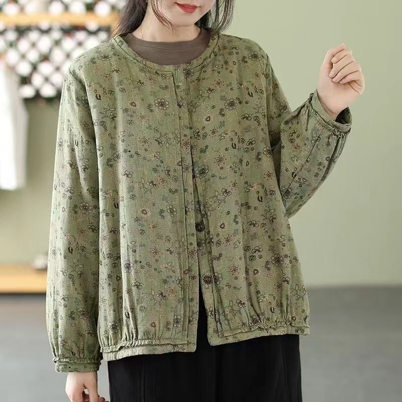 Autumn and Winter New Vintage Floral Cotton Jacket Top Loose Thickened Women’s Thin Cotton-padded Jacket Casual Art