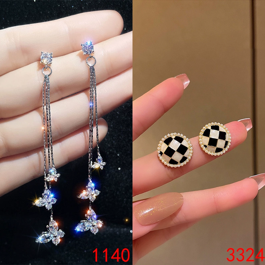 s925 silver needle Korean new tassel diamond butterfly zircon earrings long earrings temperament design earrings for women