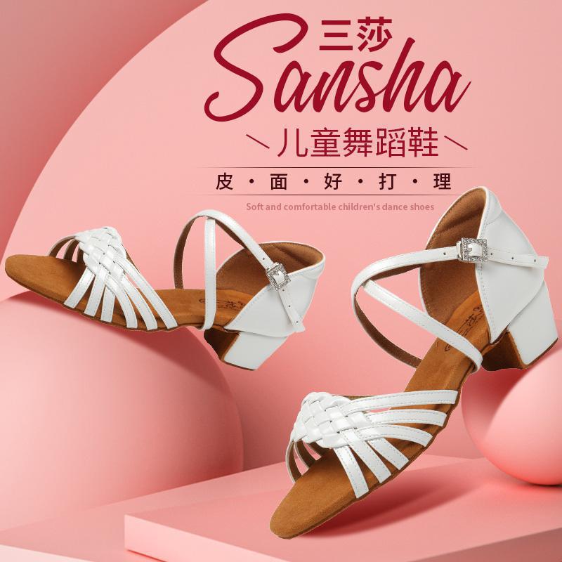 lpF Girls High Heeled Woven White Shoes Children Professional Latin Dance Shoes Soft Sole Dance Practice Shoes Children GB