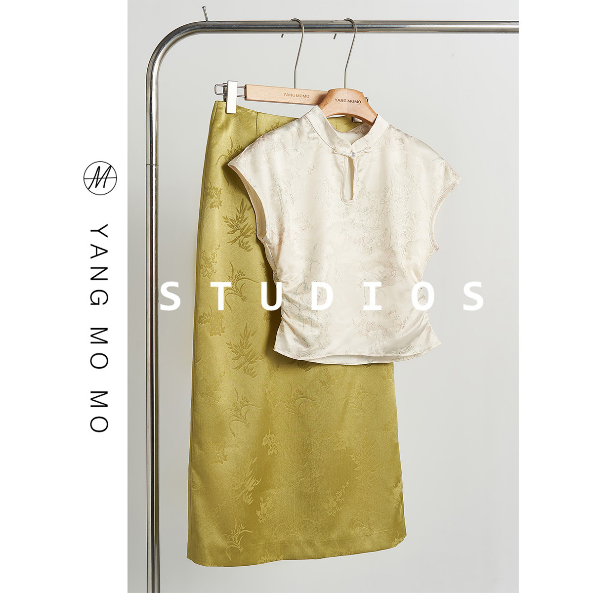 With the new Chinese style Jacquard sleeveless cheongsam shirt skirt suit 2024 new women’s summer with one