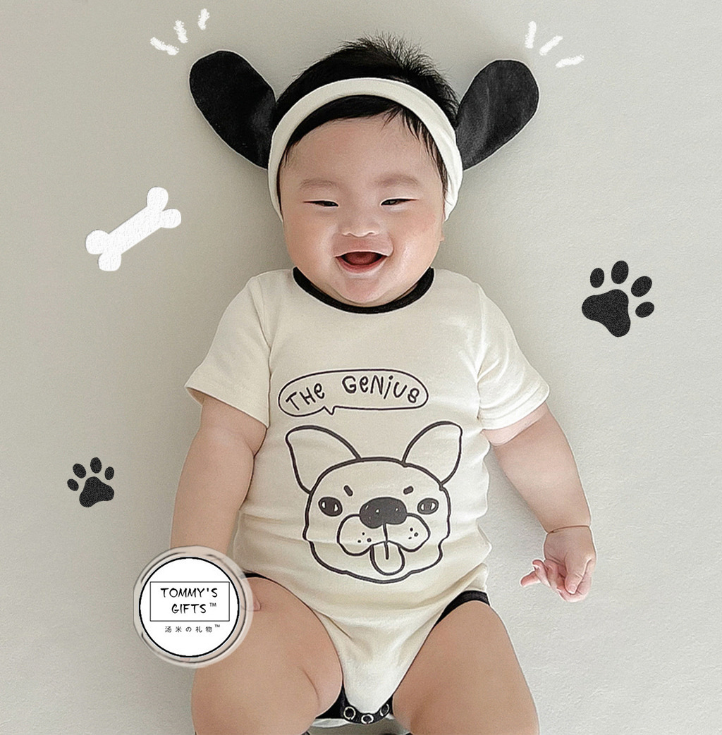 24 Korean Style Summer New Puppy Printed Short-sleeved Hatshirt Ins Style Baby Jetsuit Baby Outfit