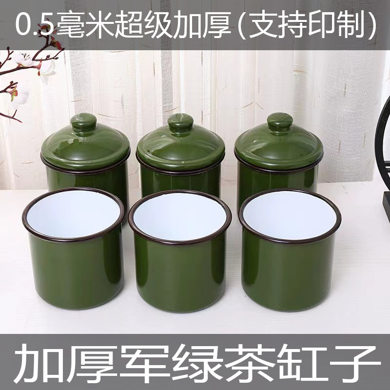 0.5mm Thickened Army Green Enamel Cup Tea Jar Retro Nostalgic Old-fashioned Iron Tea Jar with Lid Support Printing