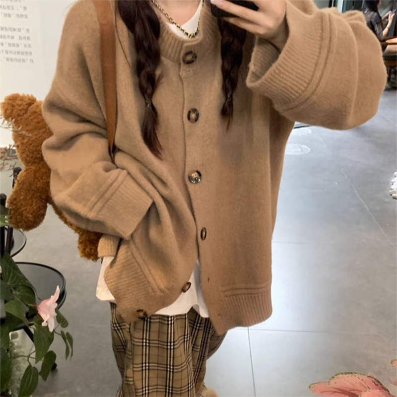 Japanese Style Lazy Style Round Neck Long Sleeve Sweater Coat Women’s Autumn and Winter New Soft Waxy Knitted Cardigan Loose Top for Outer Wear