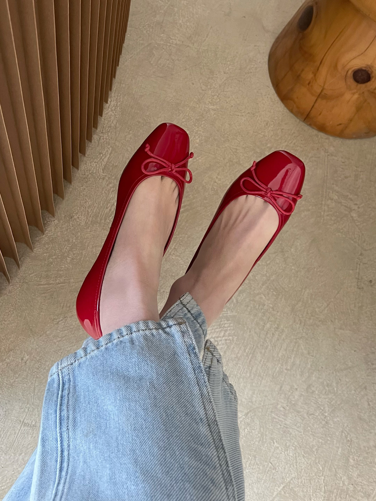 Self-made square toe women’s shoes with the same style as shallow patent leather Tsing Yi