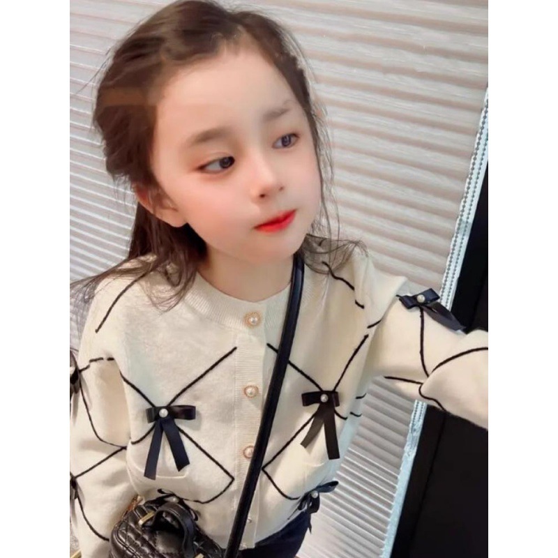 Girls’ Knitwear Children’s Spring and Autumn Sweater Base Cardigan 2024 New Style Chanel Style Autumn Coat for Autumn and Winter