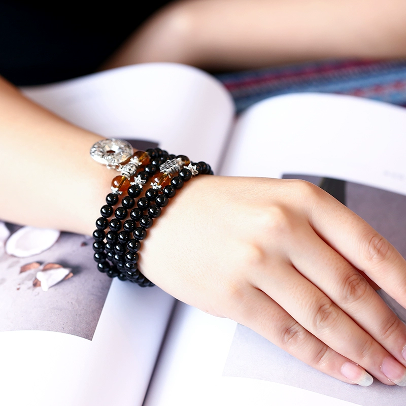 Obsidian Citrine Dragon and Phoenix Tibetan Silver Bracelet Simple and Generous Buddha Bead Bracelet Couple Birthday Gift Jewelry
