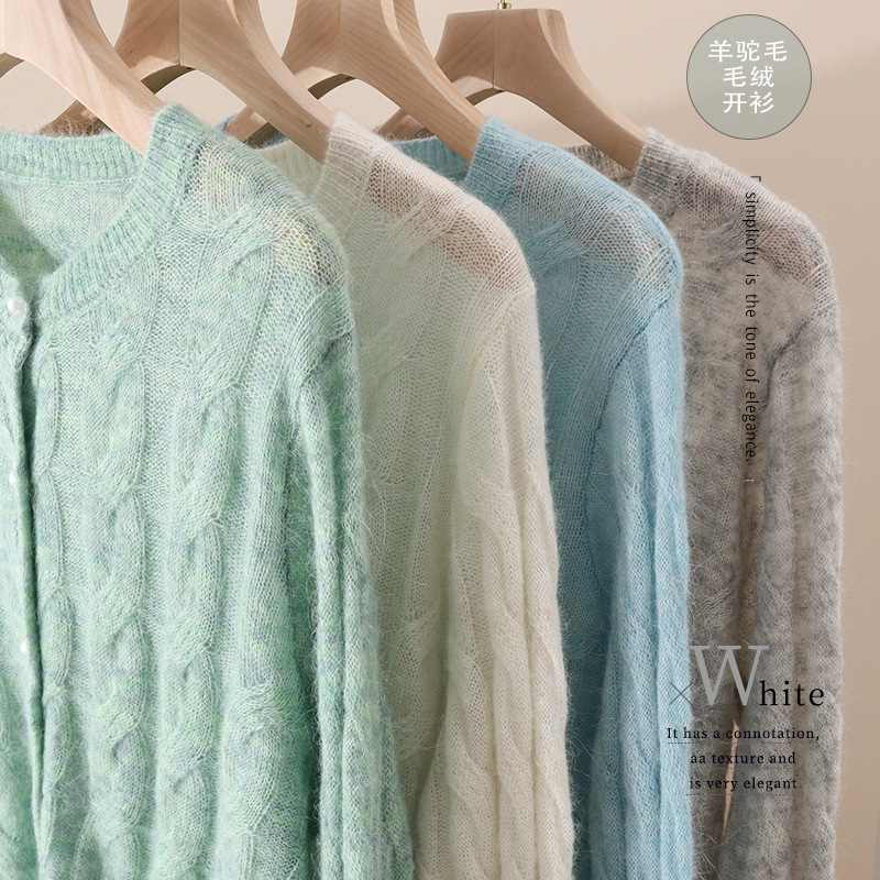 Gentle alpaca wool knitted cardigan for women 2023 autumn new fashionable twisted design lazy style sweater