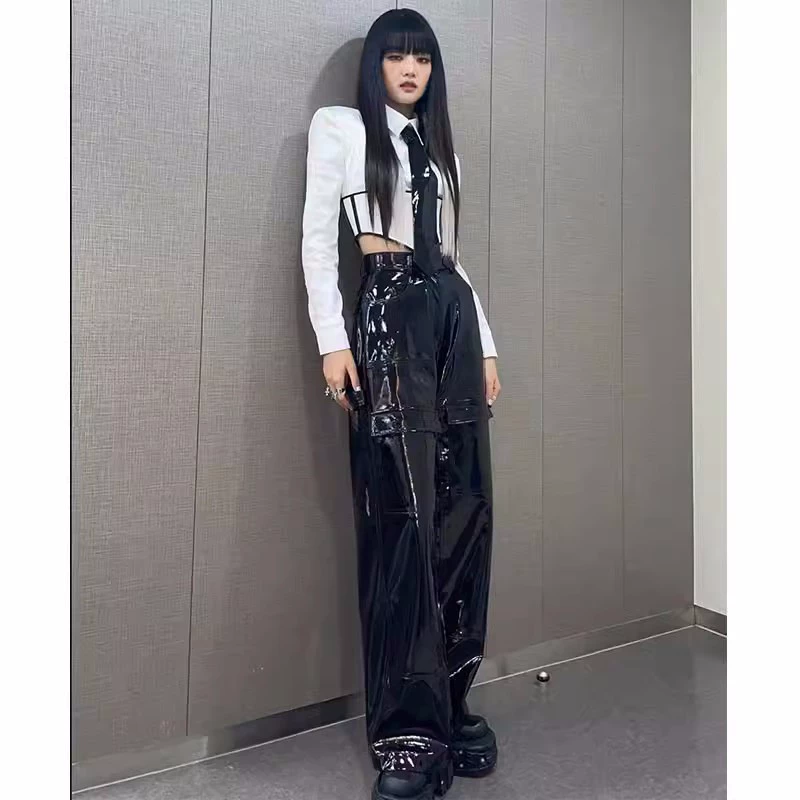 gidle Korean girl group’s same style jazz dance trendy hip-hop JAZZ performance costumes and singing costumes new leather pants suit