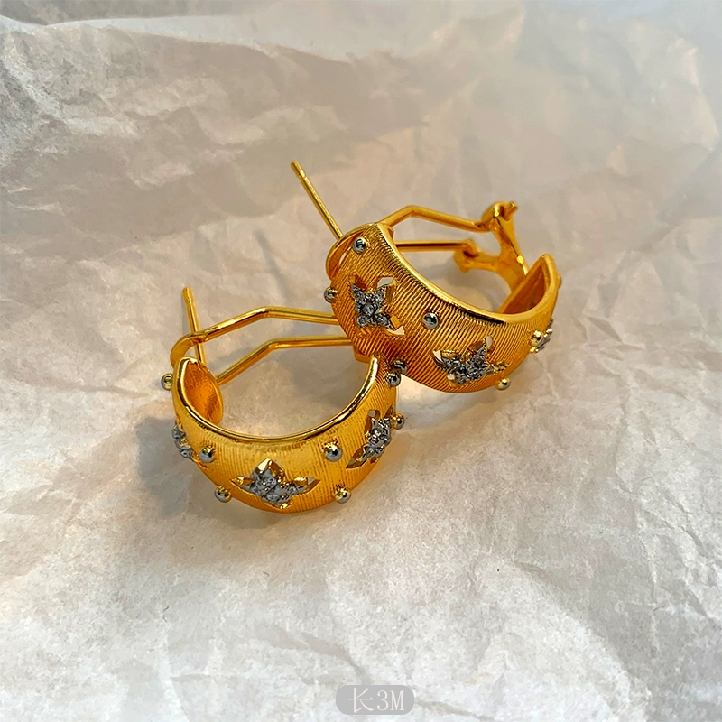 Versatile retro women’s half circle gold and silver two-color niche earrings