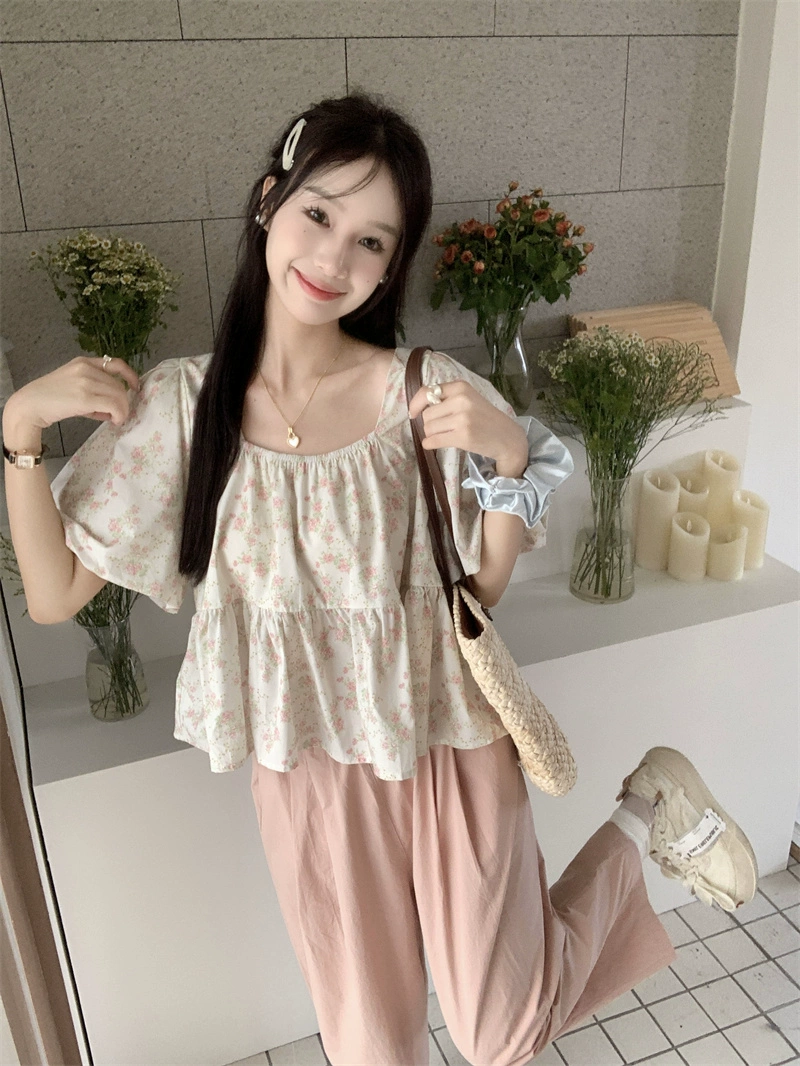 AL038 Cotton Mesh High Temperature Dyeing Apricot Lace Doll Shirt Ten Shorts Female Baby Fashion Two-piece Set