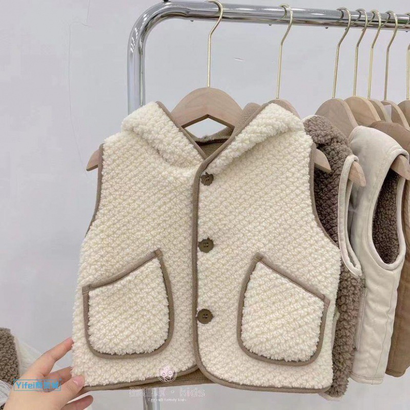 Children’s Vest Autumn and Winter Lamb Velvet Hooded Vest Trendy Childhood Vest