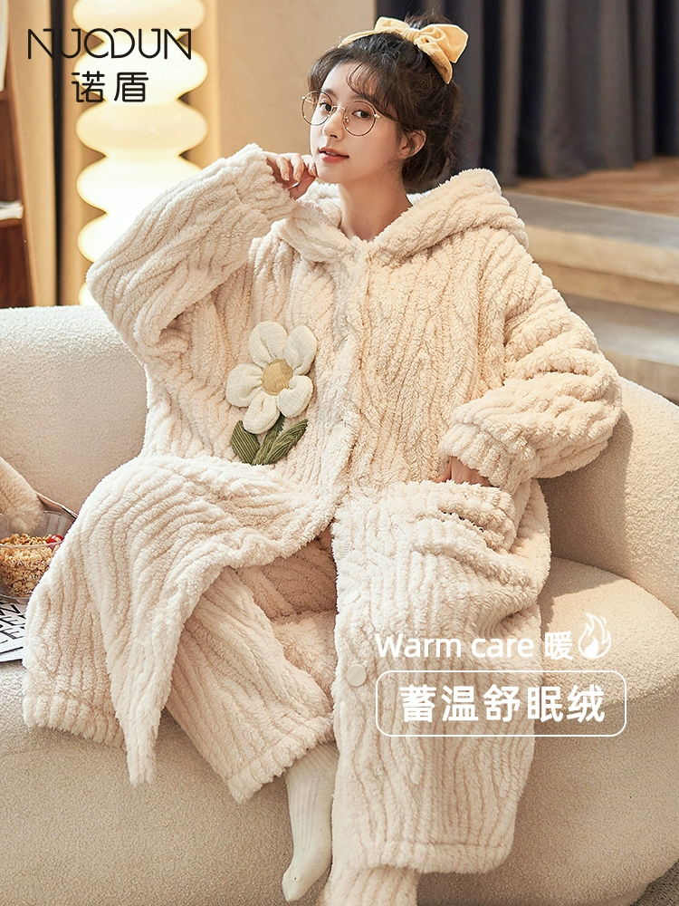 Coral velvet pajamas for women spring and autumn 2024 new thickened velvet flannel home wear pajamas for women autumn and winter suits