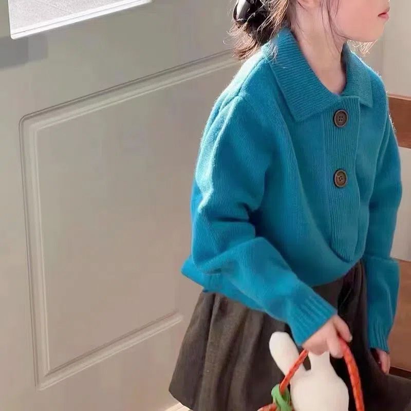 2024 New Children’s Wear Girls’ Polo Collar Stylish Spring and Autumn Outfit Fashionable Bottoming Knitwear Winter Children’s Sweater