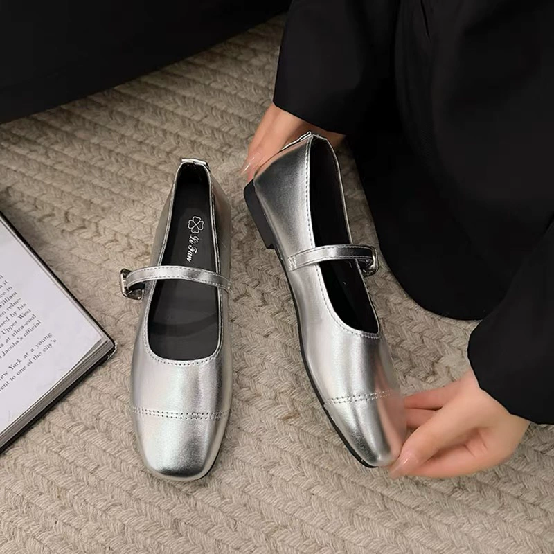 Flat-soled French Mary Jane shoes for women 2024 spring and autumn new summer silver small fragrance soft-soled scoop women’s shoes