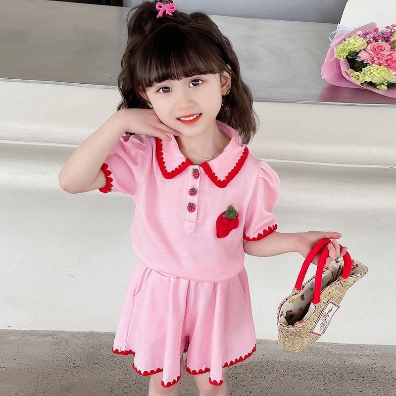 Girls’ summer suit 2024 new style children’s summer baby polo