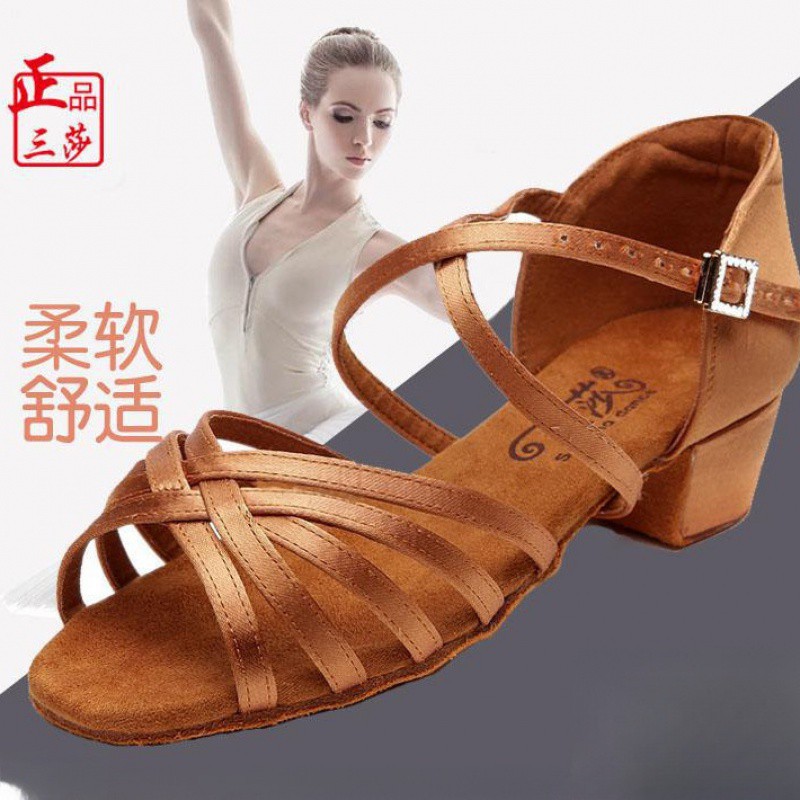 lpF Sansha Girls Latin Dance Shoes Children Girls White Beginner Dance Shoes Middle Heeled Low Heeled Dance Shoes Small