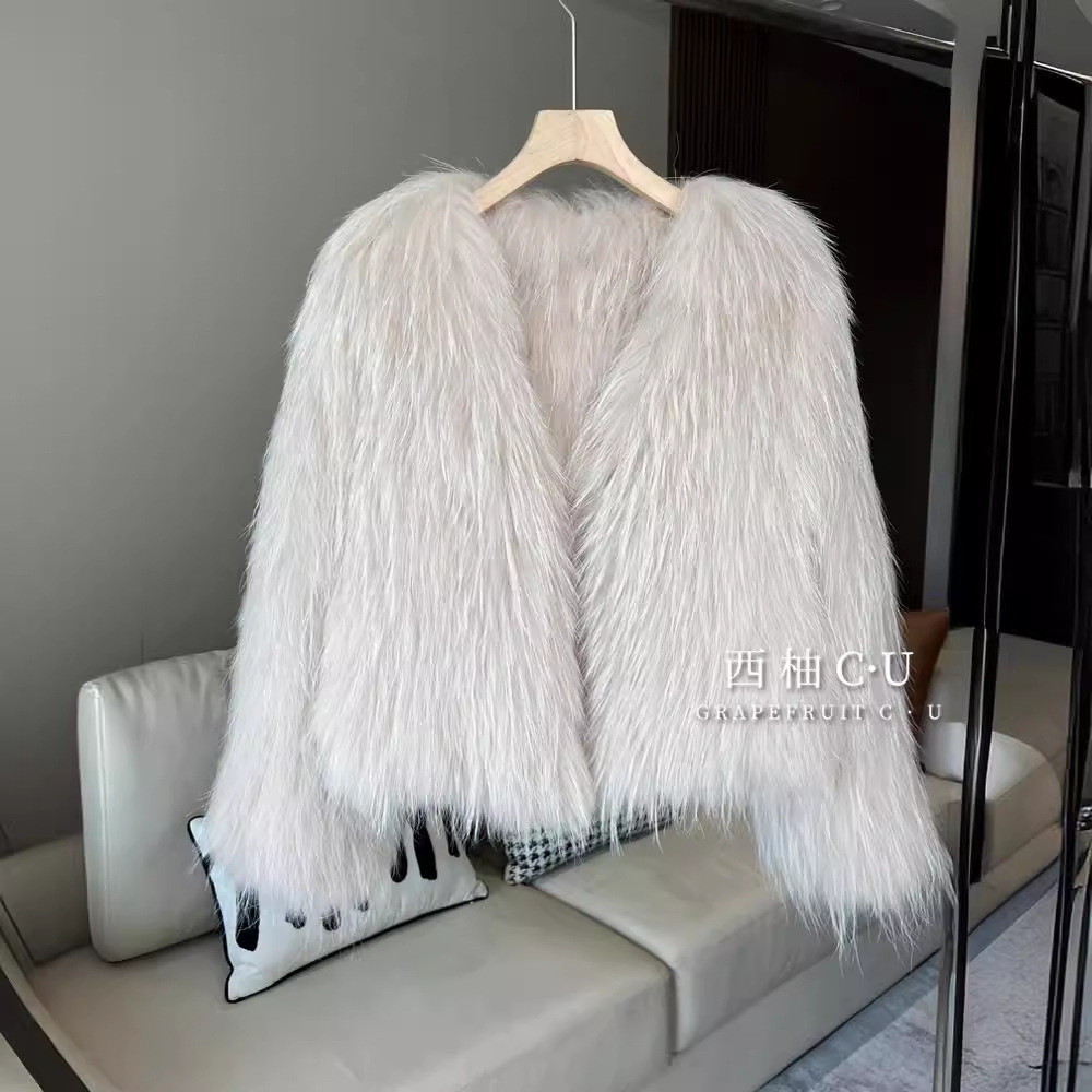 Haining source factory fur 2024 new raccoon fur double-sided woven fur coat female socialite young winter