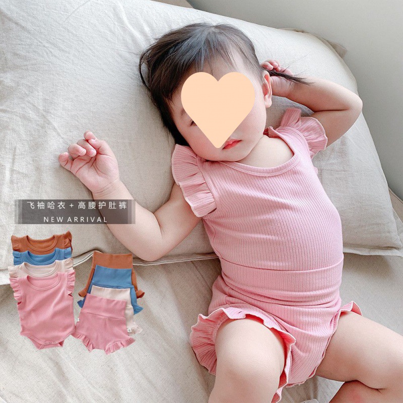 Baby’s Harper Summer Clothes Children’s Home Clothes suit Women’s Ear-rimmed Top Girls’ High Waist Shorts Two-piece Set