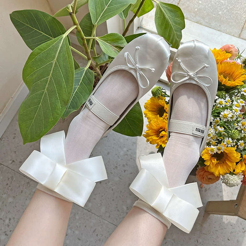 Korean bow in the stockings female milk white spring and summer thin fairy ballet socks Ins tide pink socks